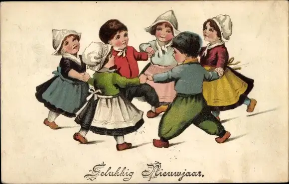 Ak Glückwunsch Neujahr, Tanzende Kinder