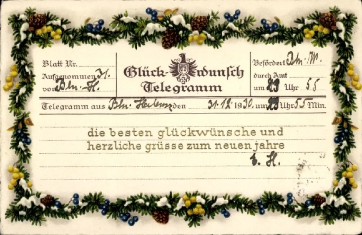 Ak Glückwunsch Neujahr, Telegramm, Tannenzweige