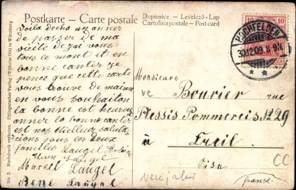 Zustand, siehe Scan, gelaufen, 1909 - ca 9 cm X 14 cm