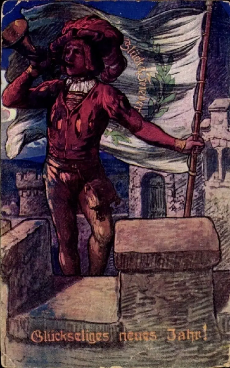 Ak Glückwunsch Neujahr, Trompeter, Fahne, Turm