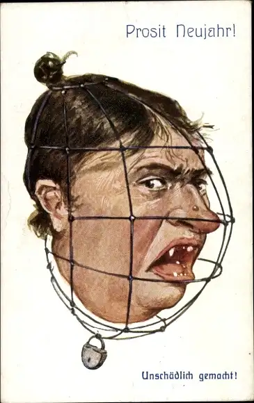 Ak Glückwunsch Neujahr, Unschädlich gemacht, Humor
