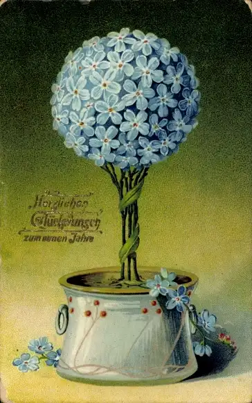 Ak Glückwunsch Neujahr, Vergissmeinnicht, Blumentopf