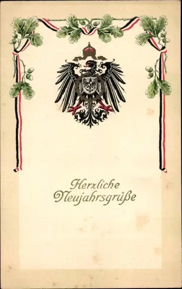 Ak Glückwunsch Neujahr, Wappen, Adler, Eichenlaub