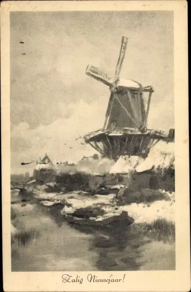 Ak Glückwunsch Neujahr, Windmühle, Fluss, Ruderboot