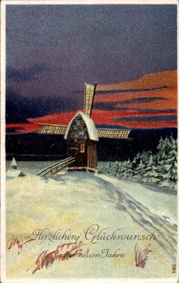 Ak Glückwunsch Neujahr, Windmühle, Schnee