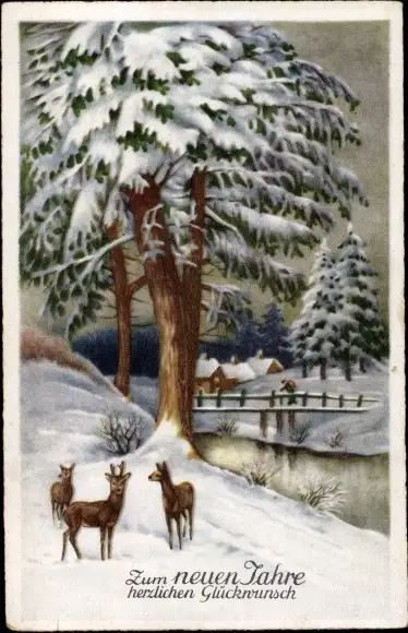 Ak Glückwunsch Neujahr, Winter, Schnee, Rehe, Hirsch