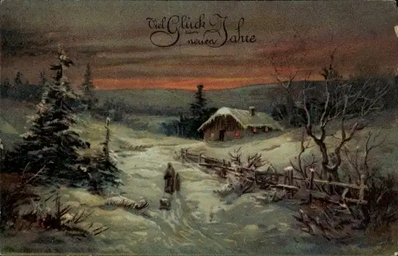 Ak Glückwunsch Neujahr, Wohnhaus, Schnee, Winter, Tannenbaum