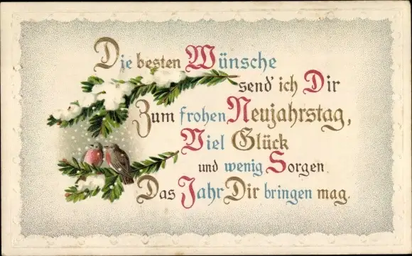 Ak Glückwunsch Neujahr, Zwei Gimpel, Tannenzweige