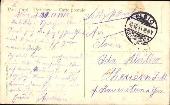 Zustand, siehe Scan, gelaufen, 1914 - ca 14 cm X 9 cm