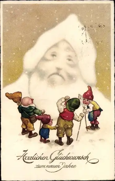 Ak Glückwunsch Neujahr, Zwerge, Schneemann