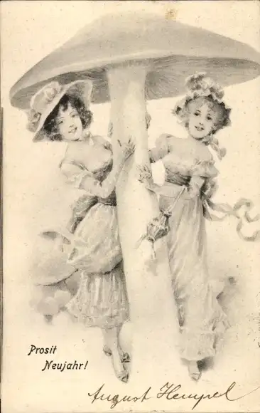Ak Glückwunsch Neujahr, junge Frauen, Pilz