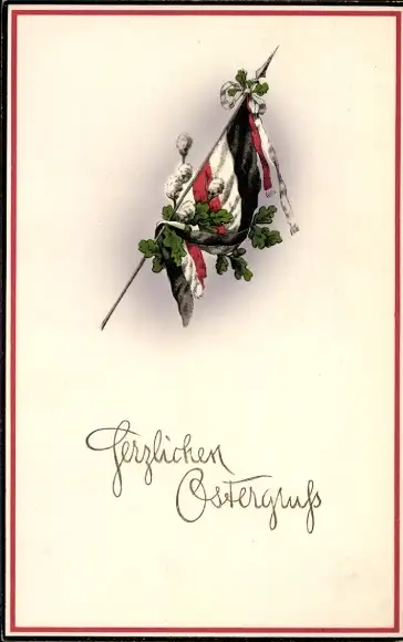 Ak Glückwunsch Ostern, Fahne, Weidenkätzchen, Patriotik
