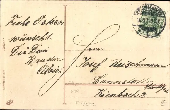 Ansichtskarte, Postkarte, Glückwunsch, Gratulation, Anerkennung, Ostern, Osterhase