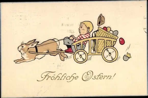 Ak Glückwunsch Ostern, Kind, Osterhase, Wagen, Ostereier