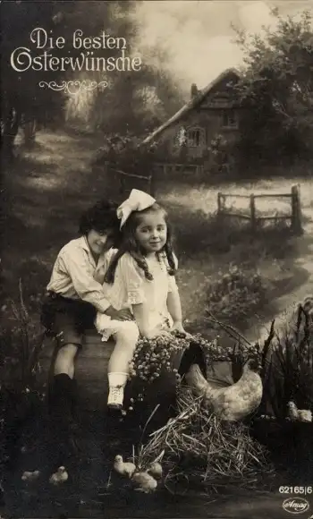Ak Glückwunsch Ostern, Kinder, Huhn, Küken