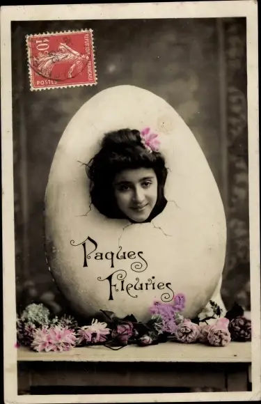 Ak Glückwunsch Ostern, Mädchen, Osterei, Blumen