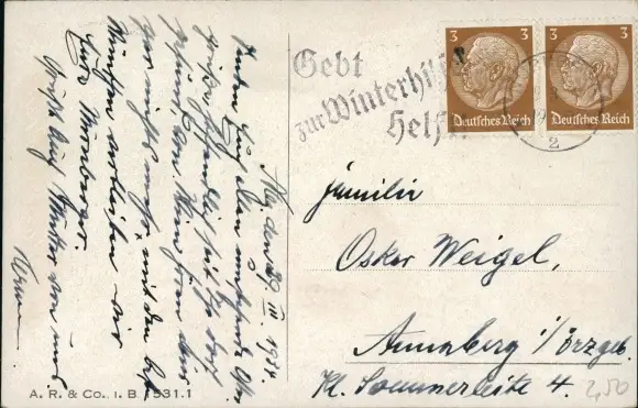 Zustand, siehe Scan, gelaufen, 1934 - ca 9 cm X 14 cm