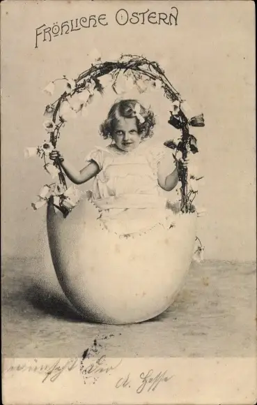 Ak Glückwunsch Ostern, Mädchen im Osterei
