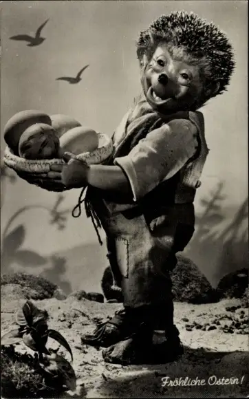 Ak Glückwunsch Ostern, Mecki der Igel, Ostereier