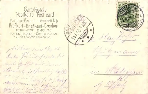 Zustand, siehe Scan, gelaufen, 1906 - ca 14 cm X 9 cm