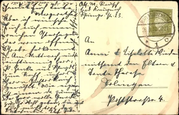 Zustand, siehe Scan, gelaufen, 1932 - ca 9 cm X 14 cm