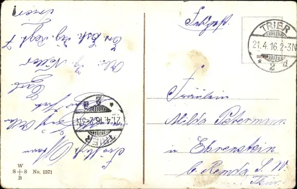 Zustand, siehe Scan, gelaufen, 1916 - ca 14 cm X 9 cm