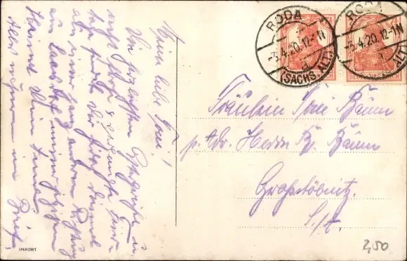 Zustand, siehe Scan, gelaufen, 1920 - ca 14 cm X 9 cm