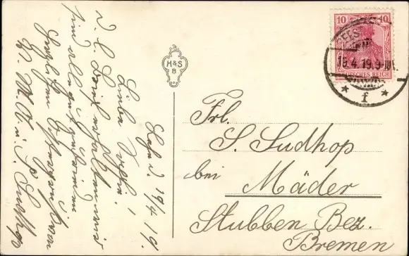 Zustand, siehe Scan, gelaufen, 1919 - ca 14 cm X 9 cm