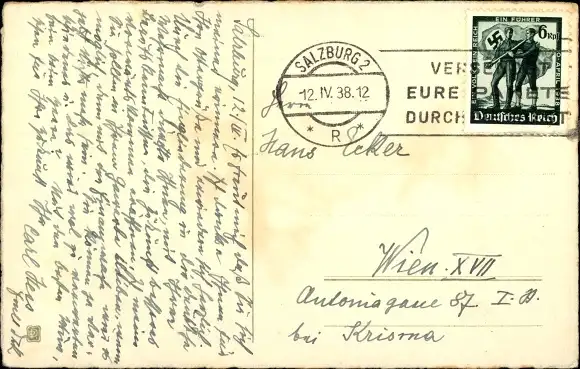 Zustand, siehe Scan, gelaufen, 1938 - ca 9 cm X 14 cm