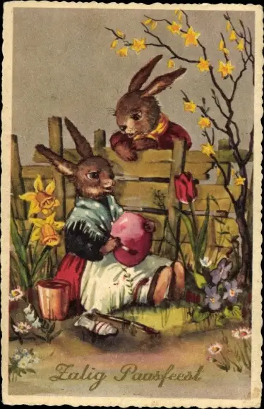 Ak Glückwunsch Ostern, Zalig Paasfeest, Osterhasen, Osterei