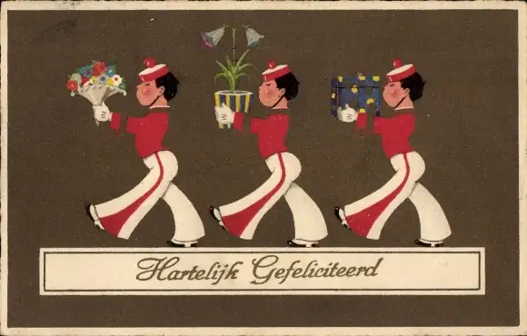 Ak Glückwunsch, Pagen, Blumen