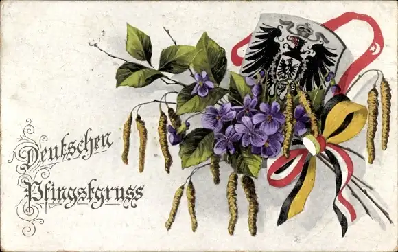 Ak Glückwunsch Pfingsten, Birke, Veilchen
