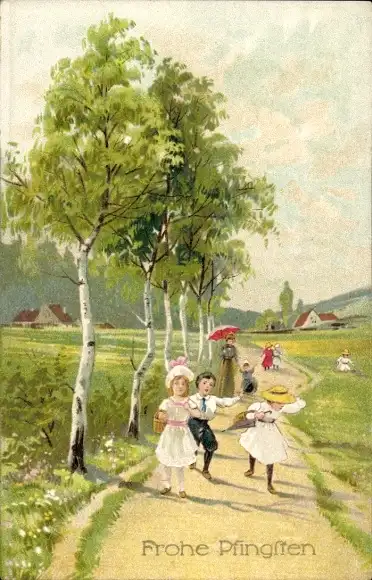 Ak Glückwunsch Pfingsten, Kinder, Birken