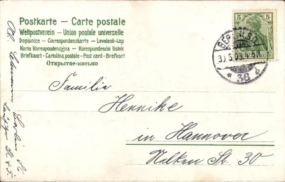 Zustand siehe Scan, gelaufen, 1903 - ca 14 cm X 9 cm