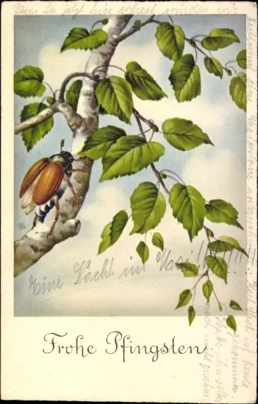 Ak Glückwunsch Pfingsten, Maikäfer, Birke