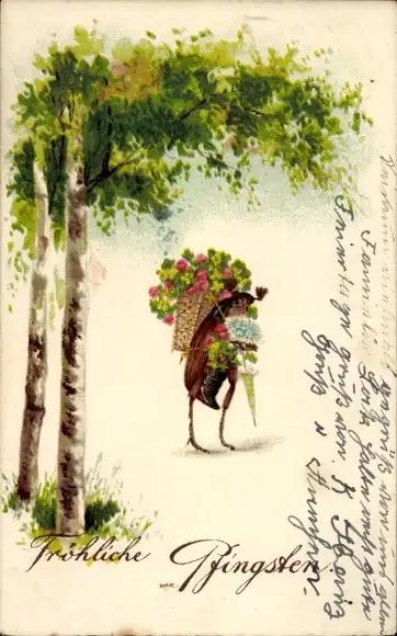 Ak Glückwunsch Pfingsten, Maikäfer, Birken