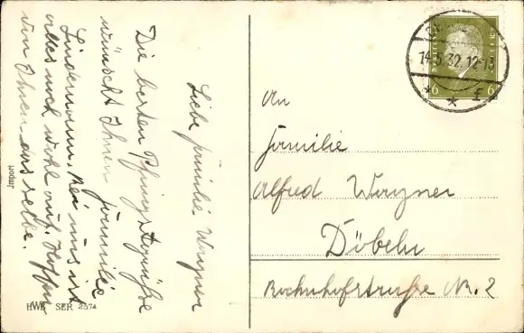 Zustand, siehe Scan, gelaufen, 1932 - ca 9 cm X 14 cm