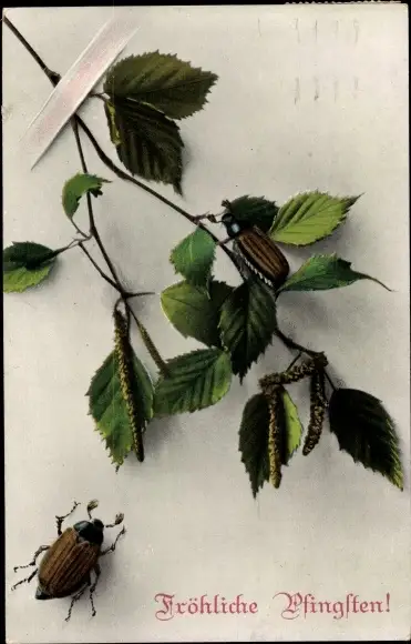 Ak Glückwunsch Pfingsten, Maikäfer, Laubblätter