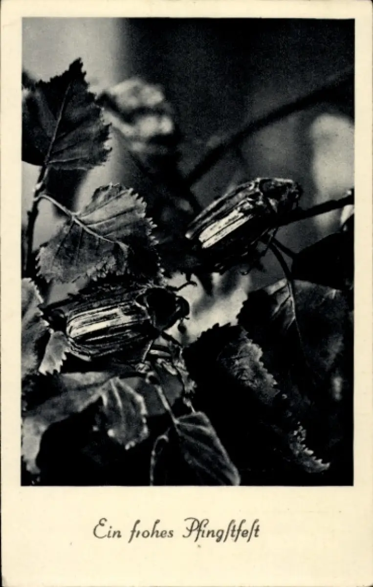 Ak Glückwunsch Pfingsten, Maikäfer, Laubblätter