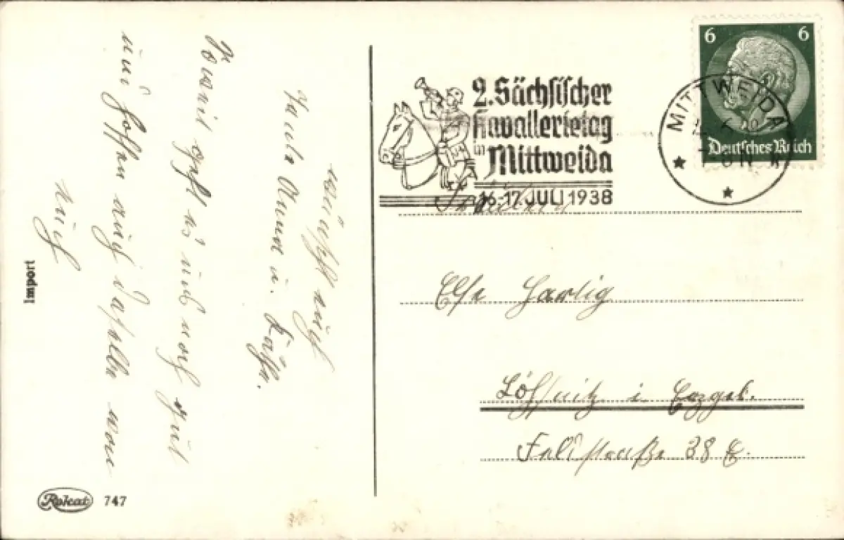 Zustand, siehe Scan, gelaufen, 1938 - ca 9 cm X 14 cm