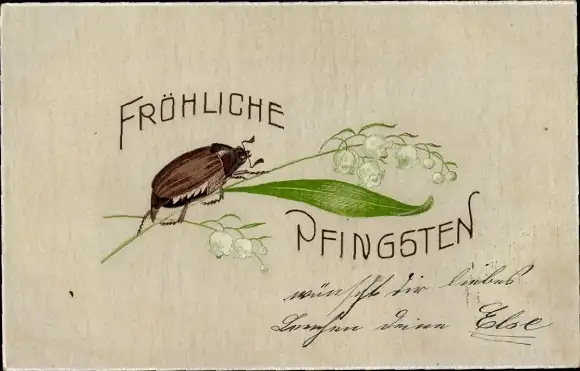 Ak Glückwunsch Pfingsten, Maikäfer, Maiglöckchen