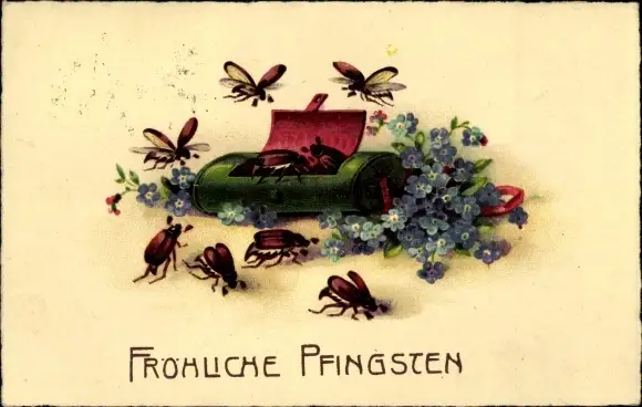 Ak Glückwunsch Pfingsten, Maikäfer, Vergissmeinnicht