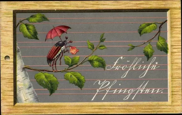 Ak Glückwunsch Pfingsten, Maikäfer auf Birkenzweig