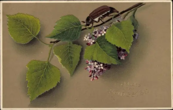 Ak Glückwunsch Pfingsten, Maikäfer auf einem Fliederzweig