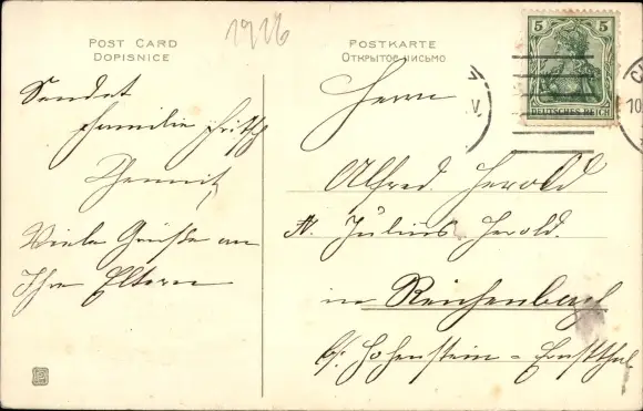 Zustand, siehe Scan, gelaufen, 1916 - ca 14 cm X 9 cm