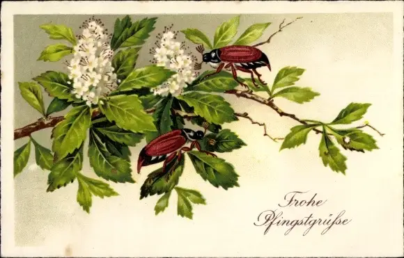 Ak Glückwunsch Pfingsten, Maikäfer auf einem Zweig