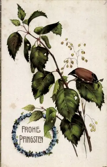 Ak Glückwunsch Pfingsten, Maikäfer auf einem Zweig