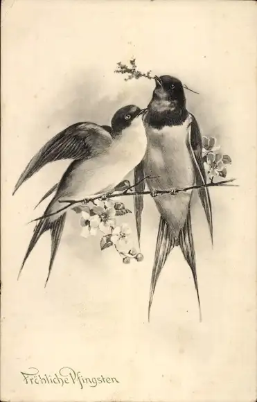 Ak Glückwunsch Pfingsten, Zwei Schwalben