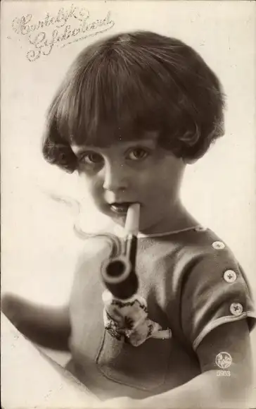 Ak Glückwunsch, Rauchendes Kind, Pfeife, Portrait