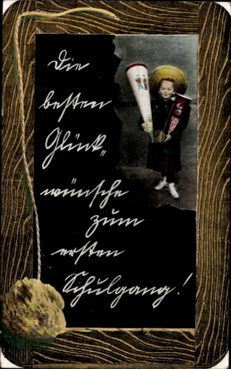 Ak Glückwunsch Schulanfang, Junge mit Zuckertüte